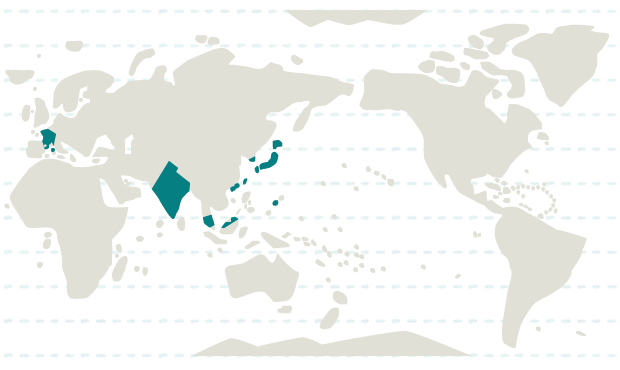 インド、韓国、台湾、香港、マカオ、マレーシア、日本