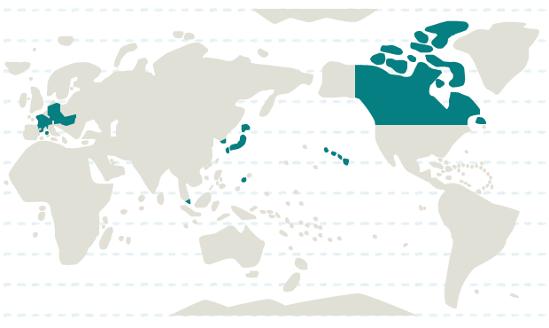 オーストリア、スイス、スロバキア、チェコ、ドイツ、ハンガリー、フランス