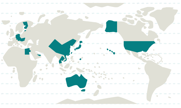 タイ、中国、ベトナム、香港、マカオ、日本、台湾