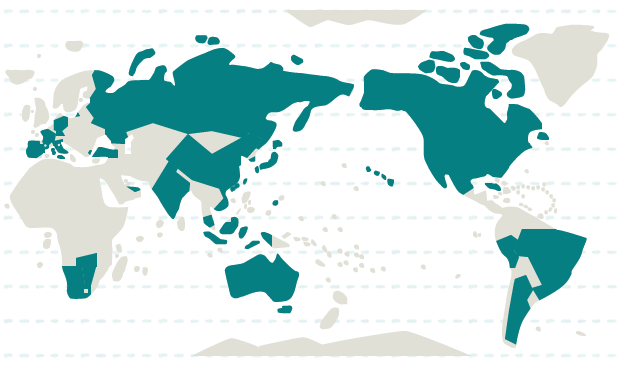 インド、インドネシア、韓国、カンボジア、台湾、中国、東ティモール、ベトナム、香港、マカオ、マレーシア、日本