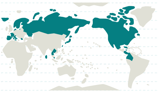 アイスランド、イタリア、ギリシャ、スウェーデン、スペイン、デンマーク、ノルウェー、バチカン、フィンランド、フランス、ポルトガル、ロシア