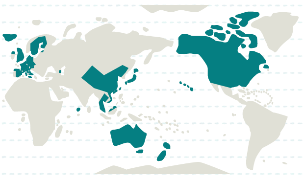 日本、シンガポール、香港、マカオ、マレーシア、モルディブ、タイ、台湾、中国、ベトナム