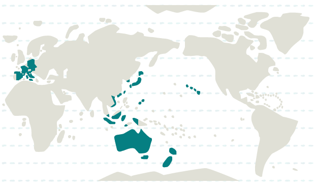 オーストラリア、北マリアナ諸島(サイパン)、グアム、ニュージーランド