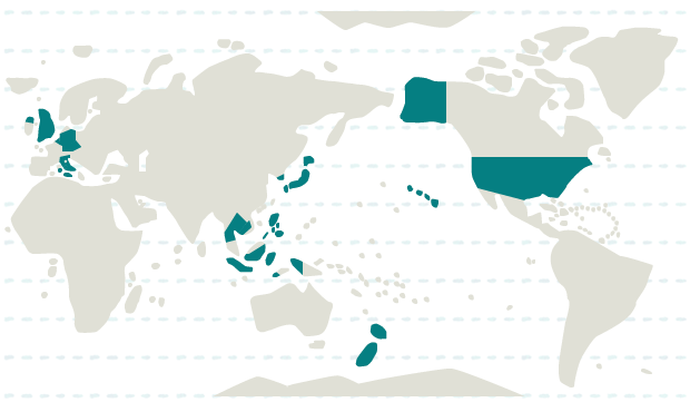 インドネシア、韓国、カンボジア、タイ、フィリピン、日本