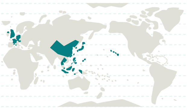 インドネシア、韓国、シンガポール、タイ、台湾、中国、フィリピン、香港、マカオ、日本