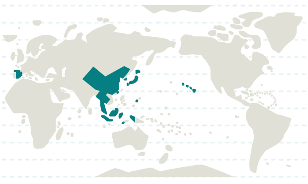韓国、シンガポール、タイ、中国、香港、マレーシア、ミャンマー、インドネシア、日本