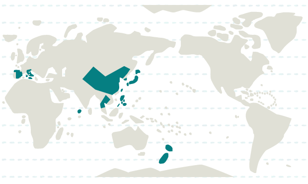 韓国、タイ、台湾、中国、フィリピン、モルディブ、日本