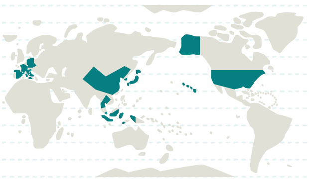 インドネシア、韓国、シンガポール、タイ、中国、日本
