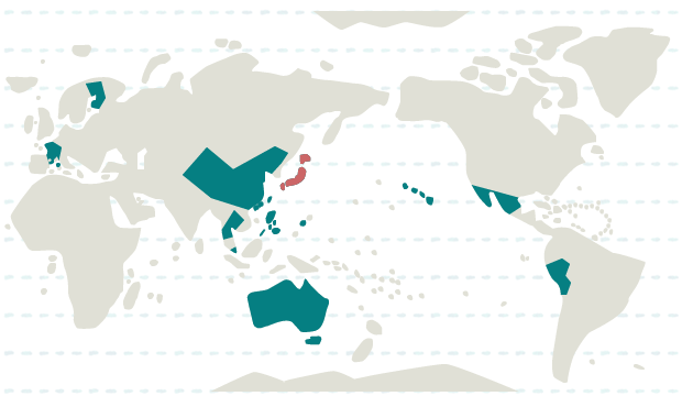 日本、シンガポール、タイ、台湾、中国、フィリピン、香港、マカオ