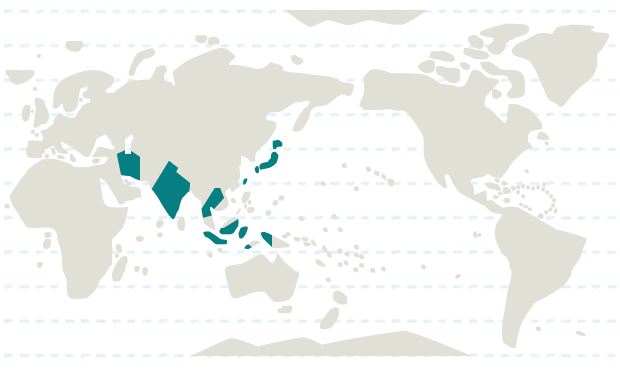 インド、インドネシア、タイ、台湾、ラオス、日本