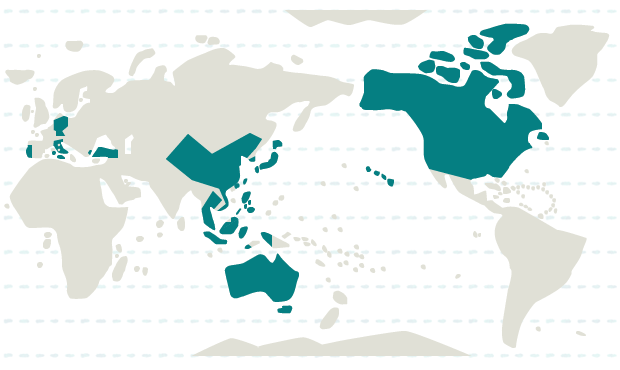 日本、インドネシア、韓国、シンガポール、タイ、台湾、中国、フィリピン、ベトナム、香港、マレーシア