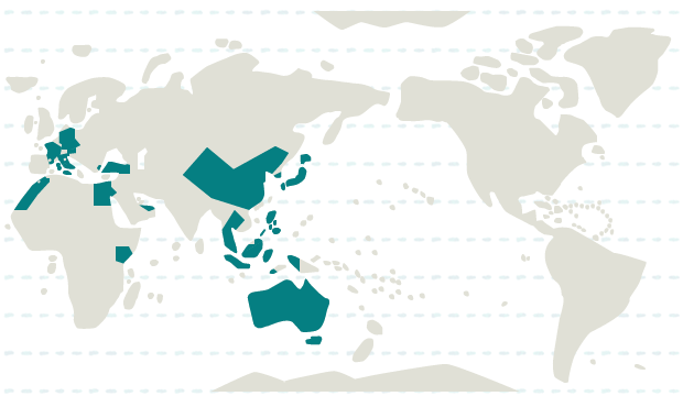 インドネシア、韓国、シンガポール、タイ、中国、日本、フィリピン、マレーシア
