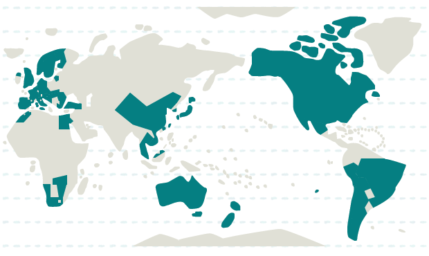 イギリス、イタリア、オーストリア、クロアチア、スイス、スウェーデン、スペイン、スロバキア、スロベニア、チェコ、デンマーク、ドイツ、トルコ、ノルウェー、バチカン、ハンガリー、フィンランド、フランス、ボスニア・ヘルツェゴビナ、ポルトガル、リトアニア、ギリシャ、ブルガリア、ルーマニア、オランダ、ベルギー