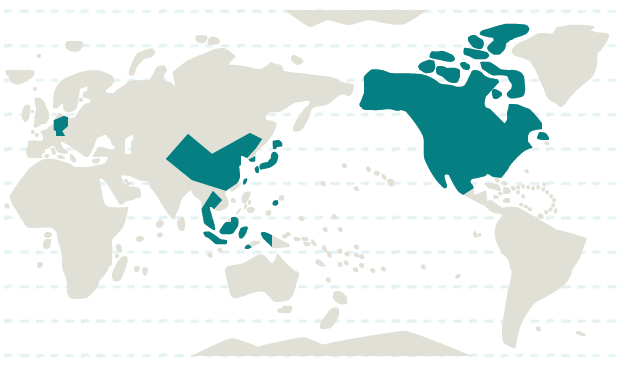 インドネシア、韓国、シンガポール、タイ、台湾、中国、マレーシア、日本