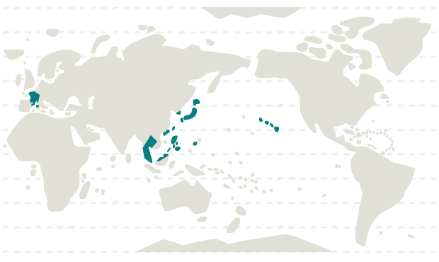 韓国、シンガポール、タイ、台湾、フィリピン、香港、マカオ、マレーシア、日本