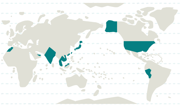 インド、カンボジア、タイ、台湾、ネパール、ベトナム、香港、マカオ、マレーシア、日本
