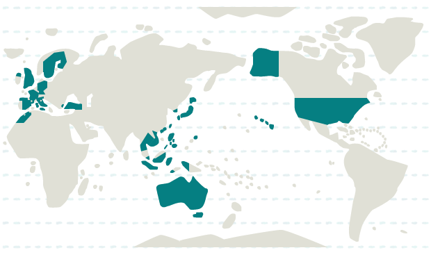 日本、インドネシア、韓国、カンボジア、シンガポール、タイ、台湾、フィリピン、ベトナム、香港、マカオ