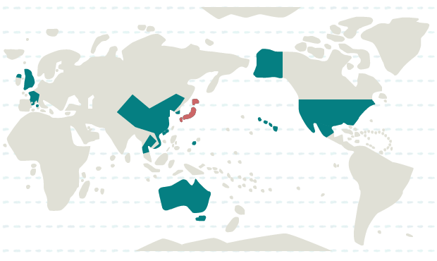 韓国、タイ、中国、ベトナム、香港、マカオ、日本