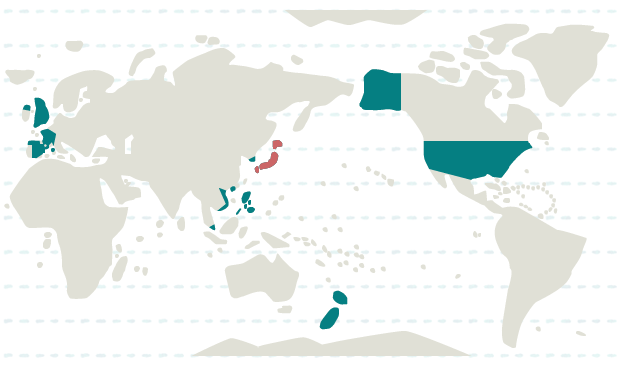 韓国、シンガポール、フィリピン、ベトナム、マカオ、日本