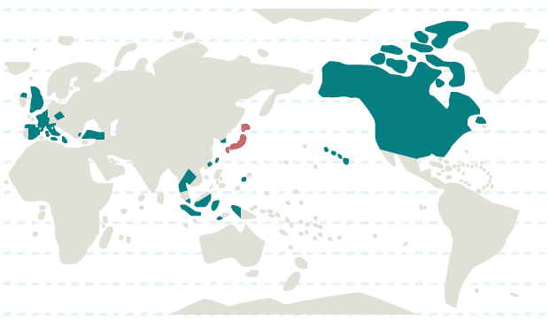 インドネシア、韓国、シンガポール、タイ、台湾、香港、日本