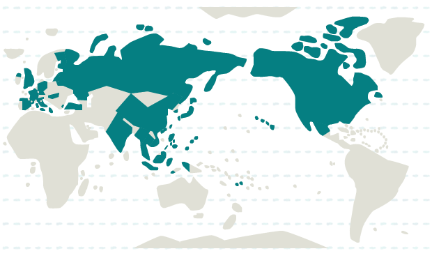インド、インドネシア、韓国、カンボジア、シンガポール、タイ、台湾、中国、フィリピン、ベトナム、香港、マカオ、マレーシア、ミャンマー、日本