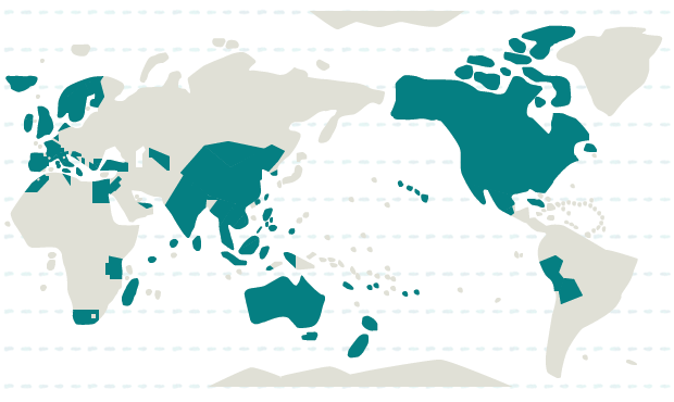 インド、インドネシア、韓国、カンボジア、シンガポール、スリランカ、タイ、台湾、中国、ネパール、フィリピン、ブータン、ベトナム、香港、マレーシア、ミャンマー、モルディブ、ラオス、ブルネイ、モンゴル