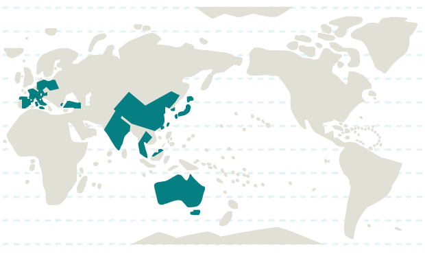 日本、韓国、シンガポール、タイ、中国、台湾、インド、香港、マレーシア