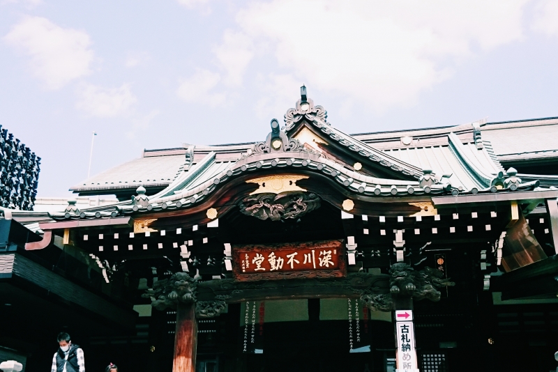 東西線1番出口からすぐのお寺、深川不動堂。こちらは、千葉県成田市にある成田山新勝寺の東京別院です。壁一面黒と金の梵字で埋め尽くされる本堂には、目が釘付けになります。境内は工事中で(2017年1月現在)、足場が組まれている個所もありますので、気を付けてお参りしましょう。