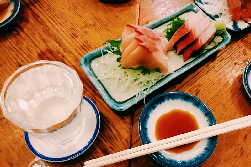 お刺身は分厚く切ってあります。お酒はこぼれるくらいなみなみついでくれます。