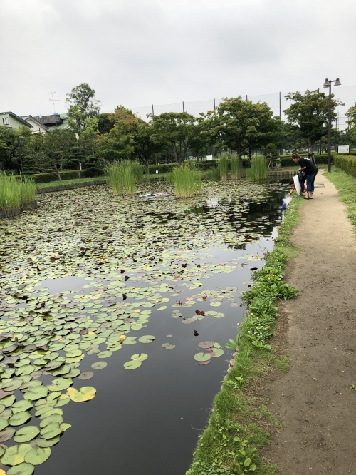 東西3kmにわたり、西葛西と葛西を横断する長い公園です。西葛西と葛西エリアは西の荒川・中川と東の旧江戸川に挟まれており、近辺では昔は漁業やノリの養殖、農業などが盛んに行われていました。その2つのエリアを横断し東西の河川を結んで流れる左近川(さこんがわ)は、農業用水路や漁業などで使うべか舟が行き来する河港として重要な役割を担った一級河川でした。