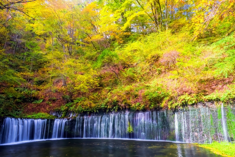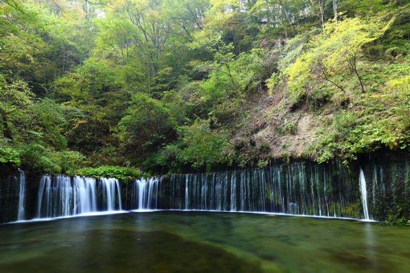 紅葉や新緑の季節はより一層美しさを増し、また夏には幻想的なプロジェクションマッピング「軽井沢・白糸の滝ライトアップイリュージョン」を開催し人気を集めています。