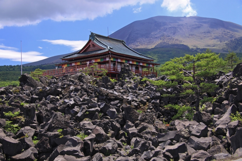 白糸の滝の次に訪れる「鬼押出し園」は、1783年の浅間山噴火によってできた景勝地。雄大な浅間山を背景に、噴火で流れ出た溶岩が固まって作り出された独特の荒々しい風景が楽しめます。
