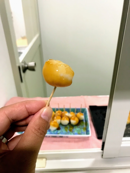 途中で出来たての団子やおせんべいが試食できるのも楽しみのひとつ。