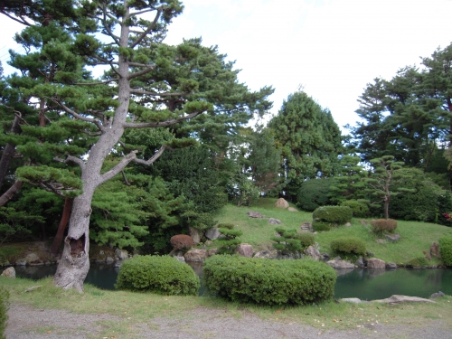 池や築山が配された書院庭園で、酒井家が庄内藩主となる以前からこの地にあったといわれており、作庭された時期はわかっていません。変化に富んだ姿を見せる名庭を、のんびりと歩いて観賞できます。