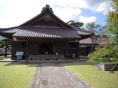 御隠殿は幕末の庄内藩主・酒井忠発が建てた隠居所で、江戸にあった中屋敷の一部を転用した建物です。内部には江戸時代の鶴岡や庄内藩酒井家に関する展示が行われています。