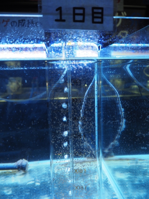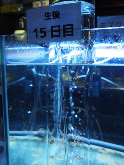 実際に、生後1日目、8日目、15日目のクラゲを見ることもできます。