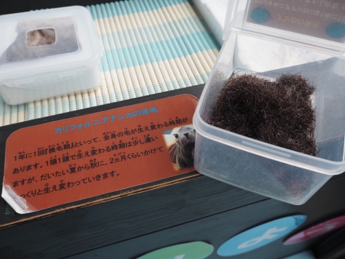 アザラシの赤ちゃんの産毛やアシカの体毛を触ることができます。アザラシの赤ちゃんの産毛はフワッフワ!