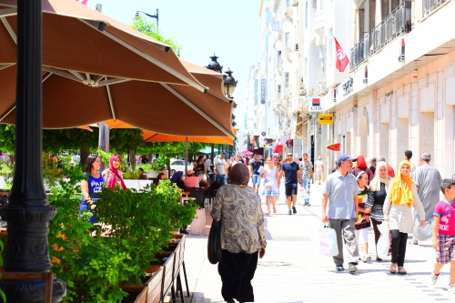 チュニスの一番のメイン通りとなる「ハビブ・ブルギバ通り」は、道沿いにホテルやブティック、レストランなどがひしめく賑やかな大通りです。