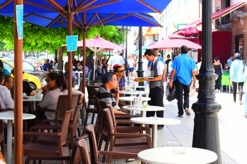 多くの市民やビジネスマン、観光客がカフェでおしゃべりを楽しんだり、ベンチで休んだりしているなど、人が集まる場所です。