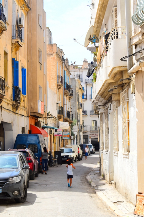 メイン通りを少し外れると一般家庭が並ぶ小路が続いていますが、ここでも、フレンチ・チュニスのコロニアル建築は続きます。