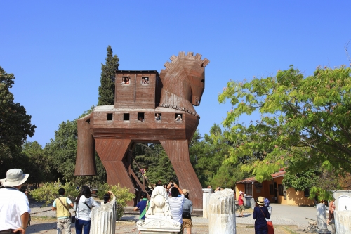 トロイ遺跡は、「トロイの木馬伝説」で有名になった、トルコにある古代都市の遺跡。「トロイの木馬伝説」は、大きな木馬の中にギリシャ軍の兵士が潜んでおり、木馬を町の中に運び入れてしまったことで、一夜にしてトロイは、ギリシャ軍に滅ぼされてしまった。という、ギリシャ神話の中のとても有名な伝説です。1998年には、世界文化遺産に登録されています。遺跡には、巨大な木馬の中に兵士を忍ばせ、夜になってから襲撃をして大勝利をしたというギリシャ神話の「トロイの木馬」のレプリカが展示されており、中に入ることもできます。