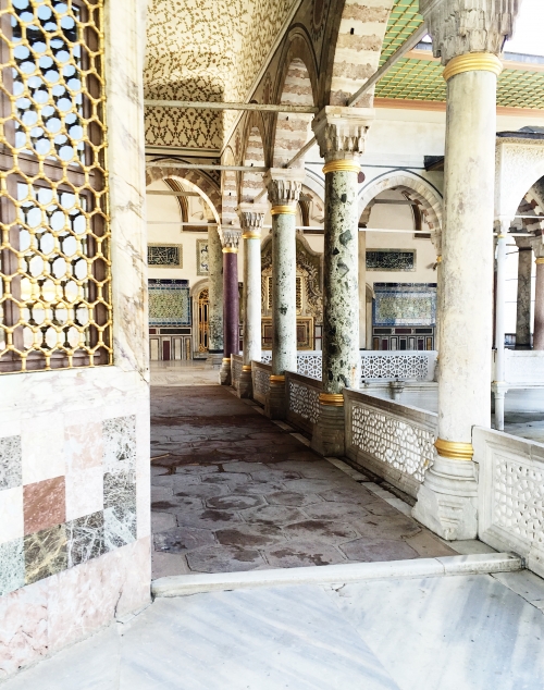迷子になるんじゃないか?というくらいこまごまとした部屋や渡り廊下、小さな庭、、、。小さな街のいろんな家を見学しているような感覚で楽しめますよ!細部の大理石や格子のデザインも、部屋や建物ごとに微妙に異なるので見飽きることがありません!宮殿内にはハレムやスルタンの私室、宝物館や東洋陶磁展示館などがあり見どころ満載の宮殿で、何時間あっても足らないくらいです。