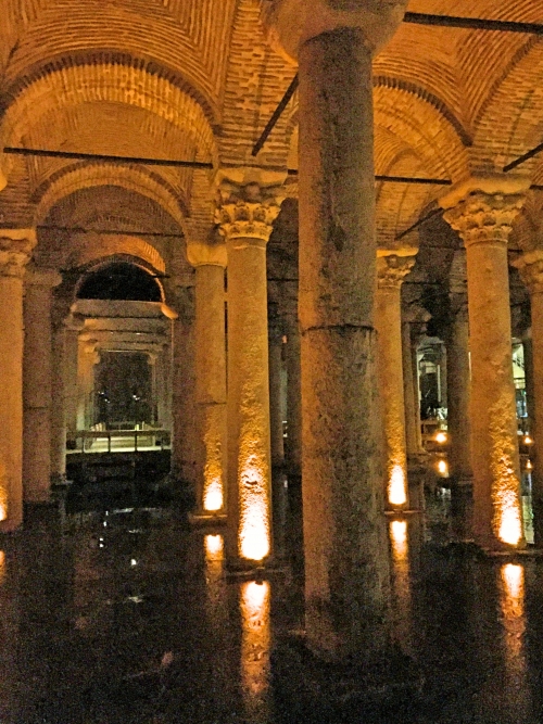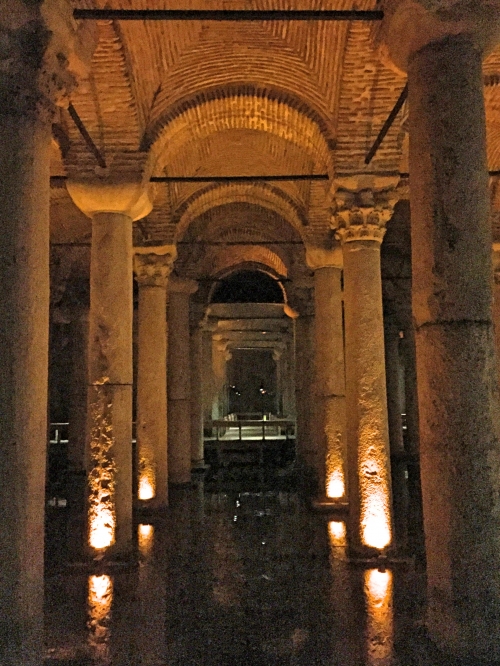 トラムのスルタンアフメット駅から徒歩5分の場所にある地下宮殿は、なんと4~6世紀という大昔に造られた貯水池。ビザンツ帝国時代からオスマン帝国時代にかけて、このあたりは周辺地域の主要な水がめとなっており、ヴァレンスの水道橋からはるばる引かれてきた水がここに貯められ、スルタンたちの住まうトプカプ宮殿にも分配されました。