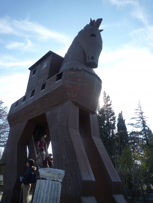トロイ遺跡は、「トロイの木馬伝説」で有名になった、チャナッカレにある古代都市の遺跡。「トロイの木馬伝説」は、“大きな木馬の中にギリシャ軍の兵士が潜んでおり、木馬を町の中に運び入れてしまったことで、一夜にしてトロイは、ギリシャ軍に滅ぼされてしまった”という、ギリシャ神話の中のとても有名な伝説です。