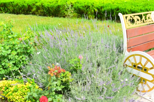 こちらも公園になっており、きちんと整備された花壇には、敷き詰められた花が咲き乱れ、蝶々が多く舞うなど、まるで桃源郷のよう。