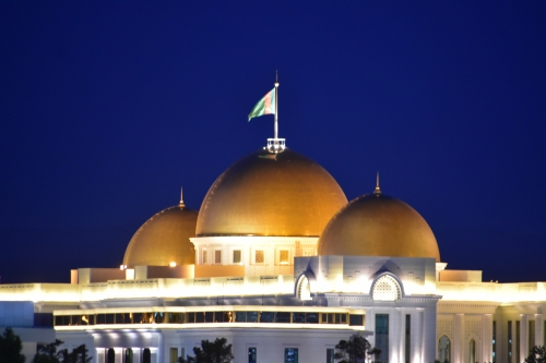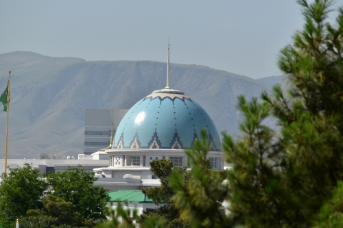 アシガバートの中心部に位置する大統領官邸は、黄金のドームと大理石で建てられています。