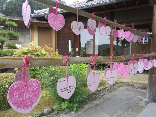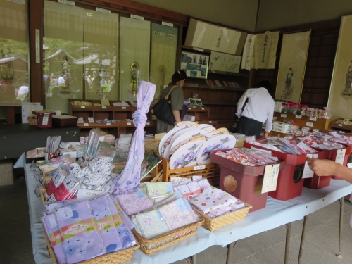 売店で、恋おみくじ・ハートのあじさい絵馬(500円)などを授かるのもよさそうですね。愛を深めるハートの紫陽花のお守りはピンクとブルーから選べ、昇運うさぎ守もありますよ(各500円)。綿麻小物のコースター(430円)やがま口小銭入れ(1,290円)、うちわ(700円)には、淡い色の紫陽花が描かれていて、女性に喜ばれそうですよ。