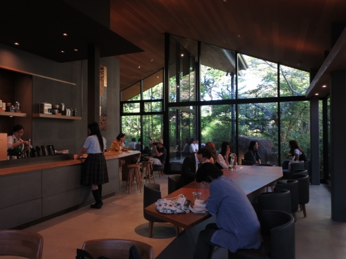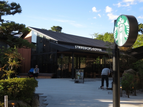 平等院の表参道にある、切妻屋根の京都らしい和の雰囲気を醸し出しているスターバックスです。天井が高くガラス窓から見える庭園も素晴らしく、一本松や枯山水が見えるテラス席もありますよ。