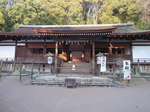 世界遺産に登録されています。世界最古の神社建築物で、本殿(国宝)には、平安時代後期に伐採された木材が使われていて、拝殿(国宝)には、鎌倉時代前期に伐採された桧が使用されています。境内を清めるための清めの砂が盛られていて、授与所で授けてもらえます(500円)。ご自宅の敷地への撒き方も書いてあり、災厄を防ぐために撒き散らすと良いそうです。