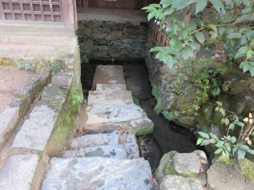 昔は宇治の至る所に名水が湧き出ていたそうですが、その中でも有名なものは宇治七名水とされていました。宇治七名水はその多くが失われたそうですが、こちらの境内では、宇治で現存する唯一の名水(桐原水)が湧いていることで有名です。石段を下りるとひんやりとして澄んだ空気と静かに湧く清水に心が洗われます。この清水で手を清めることもできますし、お飲みになりたい時は、一度沸かすと飲めるのだそう。